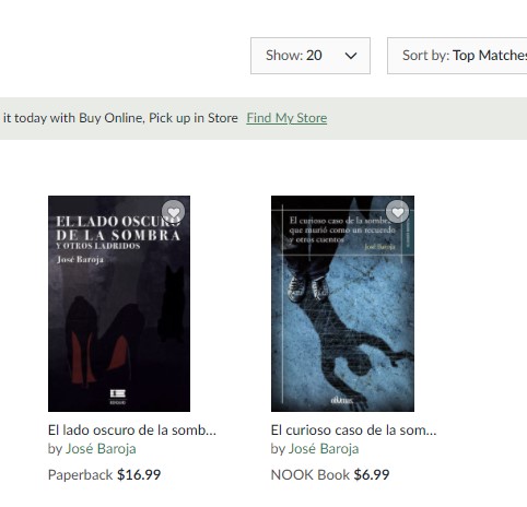 El lado oscuro de la sombra y otros ladridos y el ebook de El curioso caso de la sombra que murió como un recuerdo y otros cuentos, a la venta en Estados Unidos a través de Barnes and Noble. Para otras latitudes visita la sección «¿Dónde conseguir mis libros?«.