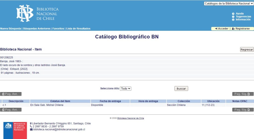 En Biblioteca Nacional de Chile, en Santiago, ya está disponibles para préstamo y consulta: El lado oscuro de la sombra y otros ladridos.