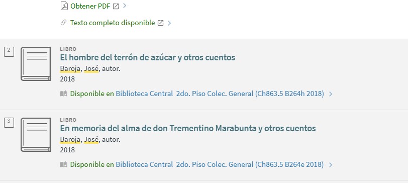 Me han informado que dos de mis primeros libros están disponibles en el catálogo de la Biblioteca de la Universidad de los Andes, en Santiago de Chile: El hombre del terrón de azúcar y otros cuentos y En memoria del alma de Don Trementino Marabunta.