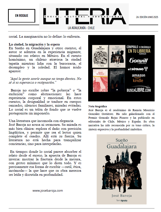 La revista Literia-social, cultural y educacional, fundada por la escritora Patricia Chacón Calderón en la Araucanía, Chile, ha publicado una crítica acerca de mi trabajo literario.