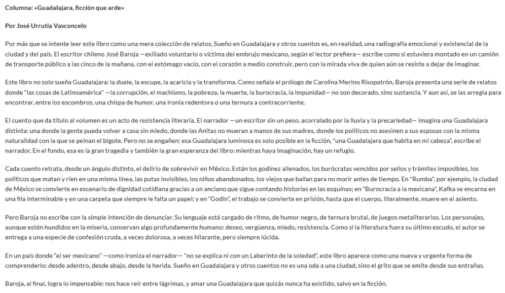 El medio de prensa mexicano De Reporteros ha publicado una columna crítica acerca de mi libro Sueño en Guadalajara y otros cuentos (TerraIgnota Ediciones: Barcelona, 2023).