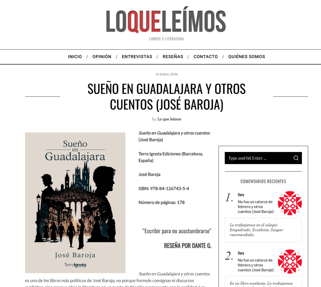 Loqueleímos.com, proyecto financiado por el Fondo Nacional del Fomento del Libro y la Lectura, en Chile, publicó una reseña acerca de mi libro Sueño en Guadalajara y otros cuentos, libro editado por TerraIgnota Ediciones, en Barcelona.